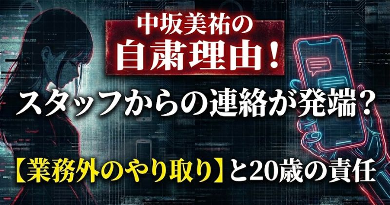 「マネージャーを担当していたスタッフより中坂美祐に対して業務の範疇(はんちゅう)を超える連絡等が行われていた」(公式サイトより要約)